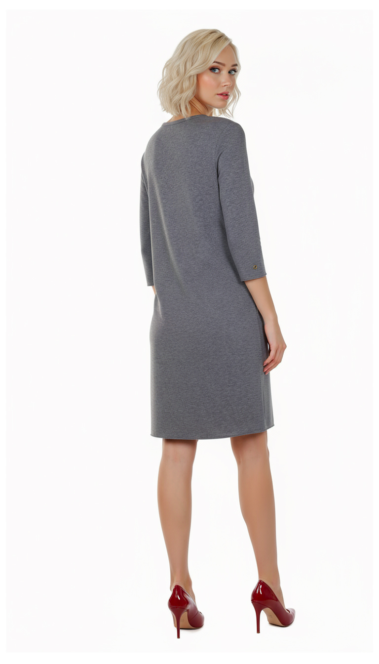 Новое трикотажное платье концерна Max Mara (линия PennyBlack) серого цвета (снаружи) и алого цвета (изнутри). Прямой фасон с рукавом 3/4. Асимметричный волан по переду — визуально стройнит фигуру и притягивает внимание (при движении становится видной алая часть). Золотая перфорация на рукавах — дополняет строгий, и в тоже время дерзкий образ. Фирменная «монетка» с гравировкой PennyBlack. В составе: 92% хлопок, 8% эластан, без подклада: ткань экстра качества — средней плотности, мягкая, фактурная (переплетение нитей «меланж»). Состояние — новое, из аутлета концерна MaxMara (ярлык бренда надрезан — это политика аутлета).