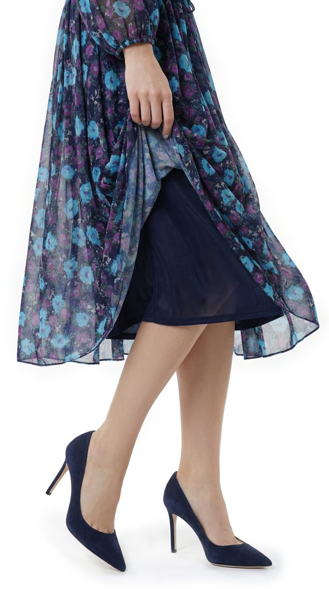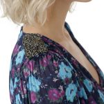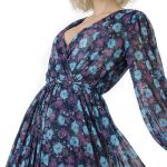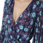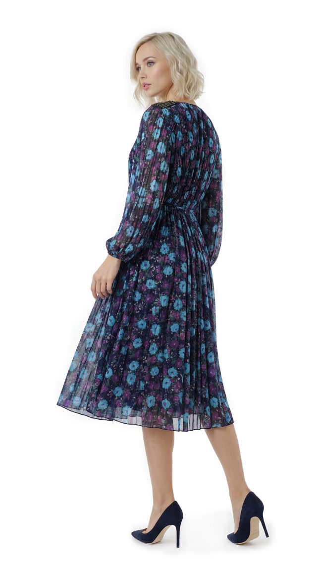Оригинал. Новое трикотажное платье концерна Max Mara с цветочным принтом фиолетово-голубых тонов. Женственный удлиненный фасон с глубоким вырезом декольте на запах, приспущенным рукавом «фонарик» и присборенной юбочкой полу-солнце. Резинка и подвязка на кантик по талии. Декор из страз на плечах. В составе 100% п.э, юбочка на подкладе из п.э. Состояние — новое, из аутлета концерна Max Mara (ярлык бренда надрезан — это политика аутлета).