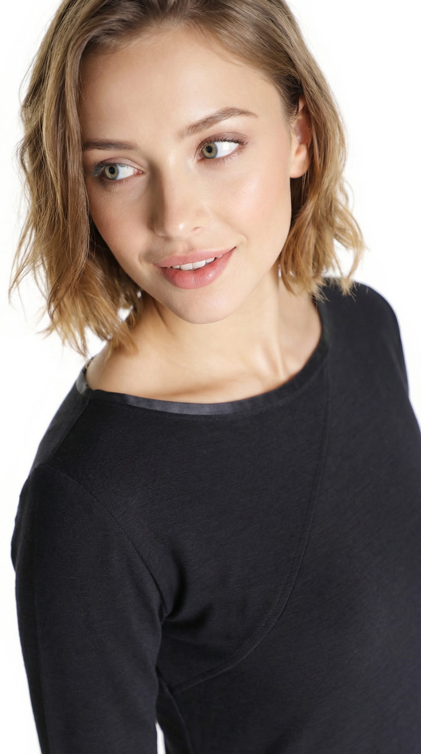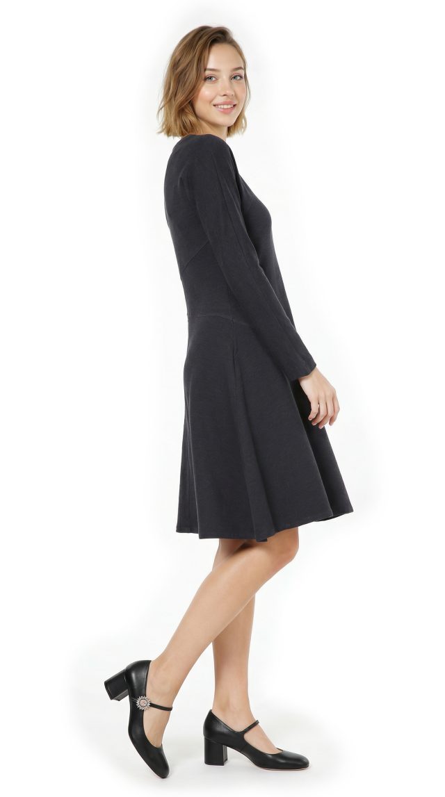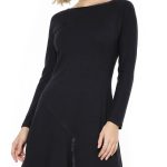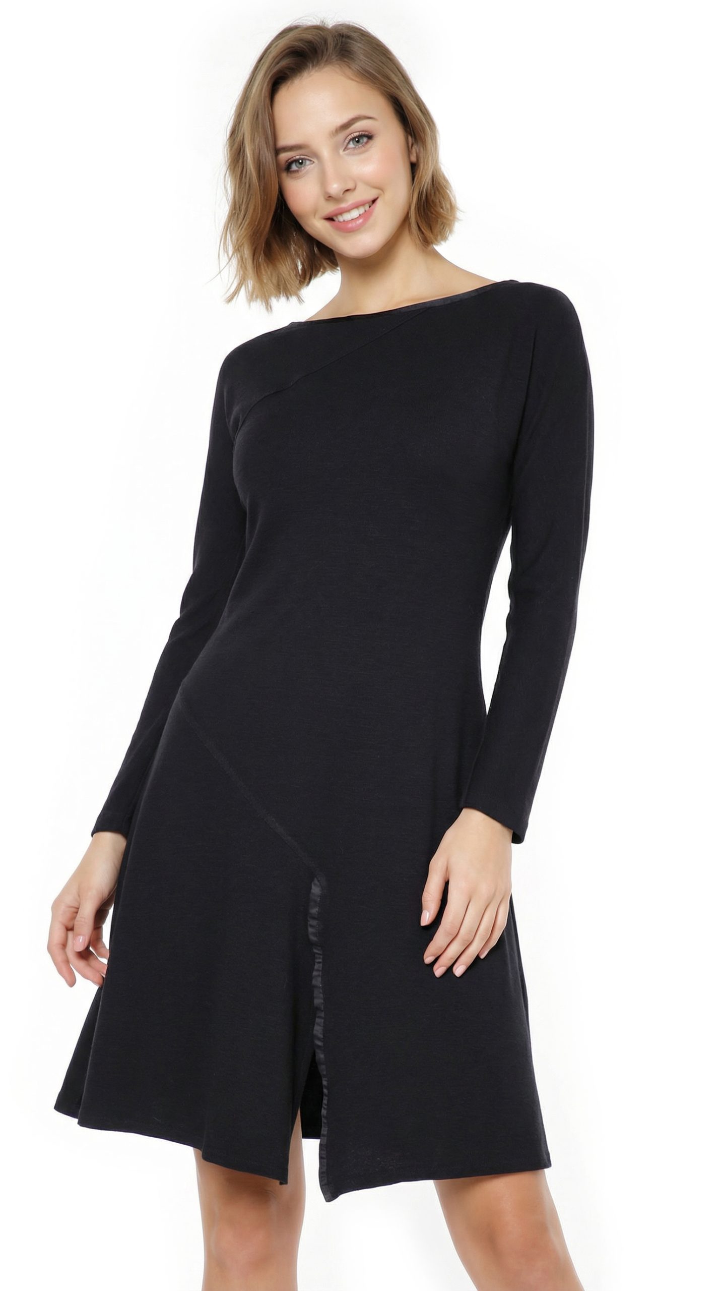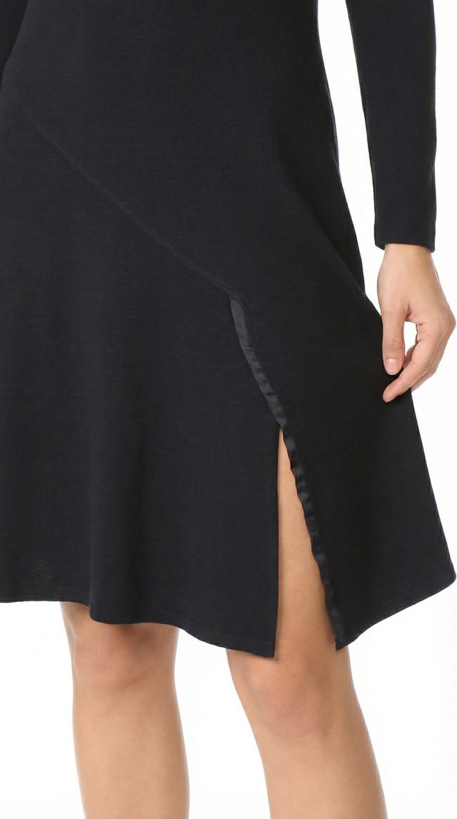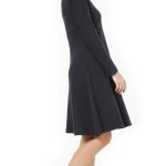 Оригинал. Женственное шерстяное трикотажное платье концерна Max Mara черного цвета. Полу-прилегающий фасон с рукавом реглан 3/4, воротничком «лодочка», декорированным шелковым кантом, и юбочкой полу-солнце с вырезом по переду. В составе: 50% шерсть, 47% вискоза, 3% полиамид, кант — 100% натуральный шелк: ткань легкая, мягкая и в тоже время теплая. Состояние — отличное.