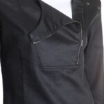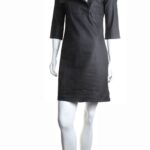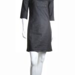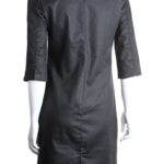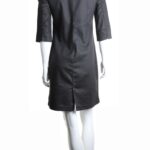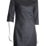 Новое платье датского бренда Minus черного цвета с эффектом под кожу. Строгий полу-приталенный фасон с молнией на груди и декоративными стильными заклепками. Рукав 3/4 со шличками на локте. В составе: 64% хлопок, 32% п.э, 4% лайкра: ткань средней плотности, с хорошим стретчем. Состояние — новое, с фирменной биркой Minus.
