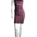 Новое стильное платье на бретелях Rinascimento винного цвета со стразами и витиеватым принтом. Облегающий покрой, который подчеркивает все прелести женской фигурки. Застежка по спинке на молнию. В составе — 62% п/э, 37% високоза, 1% эластан, без подклада: ткань плотная, с небольшим стретчем. Состояние — новое, с фирменной биркой магазина Rinascimento.