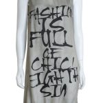 Новое пляжное платье итальянского бренда Eighth Sin серо-бежевого цвета с принтом «граффити». Свободный, немного расклешенный книзу, фасон без рукавов с резинкой по горловине и низу. В составе: 90% хлопок, 10% натуральный шелк — ткань легкая, мягкая с характерным шелковистым отливом. Состояние — новое с фирменной биркой Eighth Sin.
