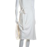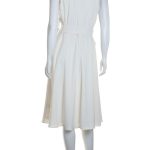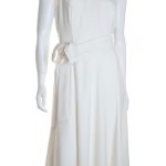 Новое трикотажное платье Ralph Lauren молочного цвета. Женственный покрой с расклешенной юбочкой и широким поясом по талии. Без рукавов. Застежка по спинке на молнию. Оригинал из США. В составе: 92% п.э, 2% эластан, на подкладе из п/э — ткань средней плотности, хорошо держит форму и садится точно по фигурке. Состояние — новое, с фирменной биркой Ralph Lauren. Цена на бирке — 170$.