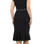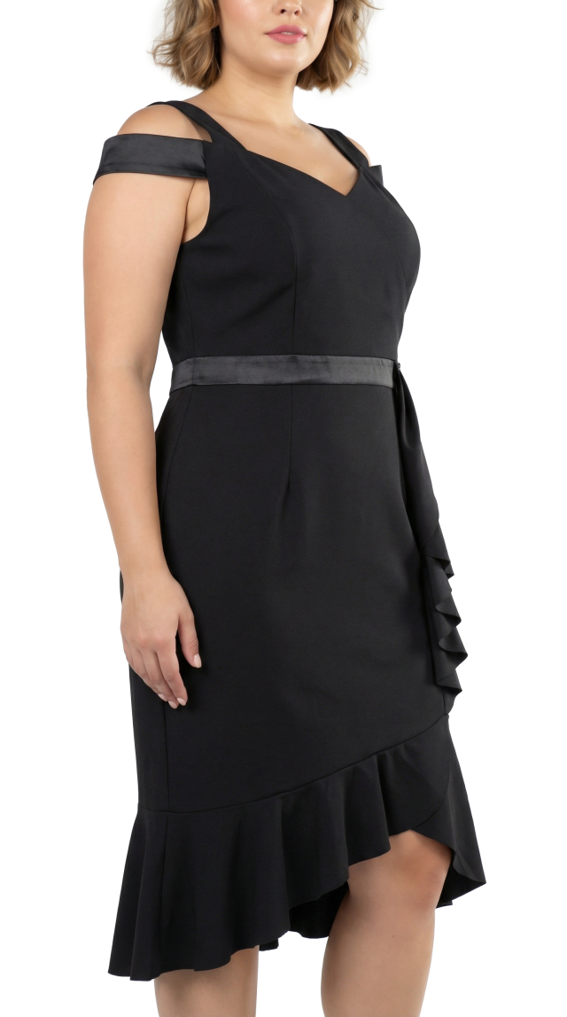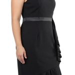 Новое платье итальянского бренда Rinascimento (Kitana) черного цвета на бретелях. Красивое оформление декольте, зауженная юбочка с воланами. Атласный кант по талии, и плечикам. Застежка по спинке на молнию. В составе — 96% п/э, 4% эластан, без подклада: ткань плотная, по фактуре «крепе». Смотрится стильно и женственно. Состояние — новое, с фирменной биркой Kitana.