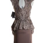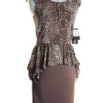 Новое итальянское трикотажное платье Rinascimento коричневого цвета в модном леопардовым принте и женственной оборкой по линии бедер. В составе — 94% п/э, 6% эластан, без подклада: ткань мягкая, шелковистая, хорошо тянется. Состояние — новое, с фирменной биркой магазина Rinascimento.