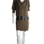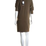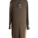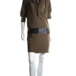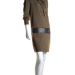 Новое платье итальянского бренда Rinascimento цвета хаки с запахом на груди и контрастной кожаной вставкой на линии бедер. Длинный рукав. Без застежки. В составе — 94% п/э, 6% эластан, без подклада: ткань мягкая, бархатистая, хорошо тянется. Состояние — новое, с фирменной биркой Rinascimento.
