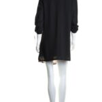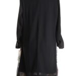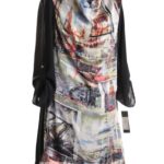 Новое женственное итальянское платье Rinascimento черного цвета с красивым географическим принтом и цельнокроеным воротничком. Свободный прямой фасон выше колена. Длинный рукав с подвязкой на пуговку. Застежка по спинке на пуговку. В составе 100% п/э, на подкладе: ткань шелковистая, легкая. Состояние — новое, с фирменной биркой магазина Rinascimento.