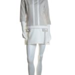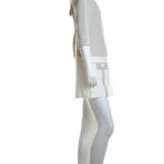 Новое стильное платье итальянского бренда Rinascimento светлого кремово-серого цвета с контрастными линиями и фальш кармашками по переду. Полуприлегающий фасон с рукавом 3/4. Застежка по спинке на молнию. В составе — 82% п/э, 12% вискоза, 6% эластан, без подклада: ткань легкая, с хорошим стретчем. Состояние — новое, с фирменной биркой Rinascimento.