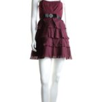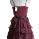 Новое платье на бретелях Rinascimento винного цвета с юбочкой воланами и декоративным пояском, расшитым яркими стразами, по талии. Застежка по спинке на молнию. В составе — 90% п/э, 10% эластан, юбочка на подкладе. Состояние — новое, с фирменной биркой магазина Rinascimento.