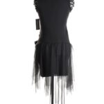 Новое стильное платье каскад Rinascimento черного цвета с леопардовым принтом, асимметричной многослойной юбочкой, декорированной бантиком, и гипюровым кружевом на рукавах. Без застежки. В составе — 34% вискоза, 64% п/э, 2% спандекс, без подклада — ткань мягкая, шелковистая, трикотажная. Состояние — новое, с фирменной биркой магазина Rinascimento.