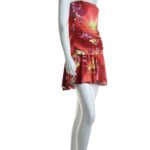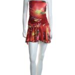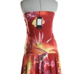 Новое итальянское платье Rinascimento с открытым декольте в ярких летних цветочных тонах длиной выше колена. Красивая драпировка по талии и оборка на линии бедер визуально стройнят фигурку. Без застежки. В составе 95% вискоза, 5% эластан, без подклада: ткань очень мягкая, шелковистая. Состояние — новое, с фирменной биркой магазина Rinascimento.