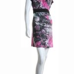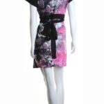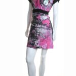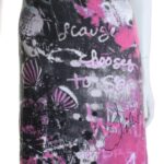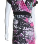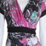 Новое трикотажное платье испанского бренда Sidecar черного цвета с граффити принтом. Приталенный фасон с подвязкой на пояс по талии, коротким приспущенным рукавом и глубоким вырезом горловины. Аппликация сердечка и декорация пайетками на груди и юбочке. Без застежки. В составе: 95% вискоза, 5% эластан: ткань средней плотности, эластичная. Состояние — новое, с фирменной биркой.