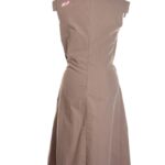 Дизайнерское платье испанского бренда Skunkfunk темно-бежевого цвета. Яркий дизайн с юбочкой, декорированной разноцветными вставками на молниях, и резной горловиной. Короткий приспущенный рукав. Аппликация по спинке. В составе — 70% хлопок, 30% нейлон, без подклада: ткань мягкая, бархатистая, «шуршащая». Состояние — идеальное, как новое.