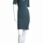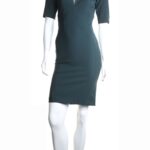 Трикотажное платье итальянского бренда SportStaff редкого, пихтово-зеленого цвета. Элегантный фасон с секси-вырезом «капелька» на груди и акцентом по талии в виде треугольника. Короткий рукав. Двусторонняя шличка по спинке. Застежка на эффектную золотую молнию. В составе: 88% п.э, 12% эластан: ткань плотная, хорошо тянется. Состояние — хорошее (по спинке есть еле различимые следы от утюга — см. предпоследние фото).