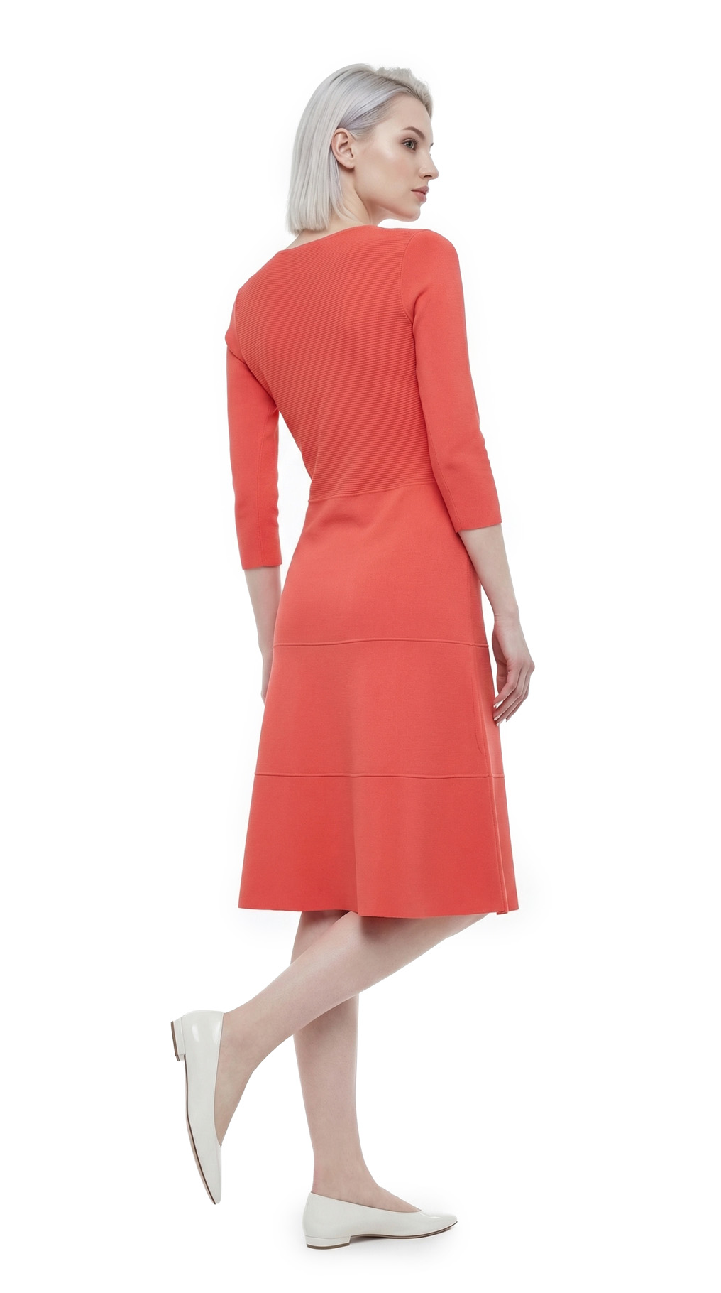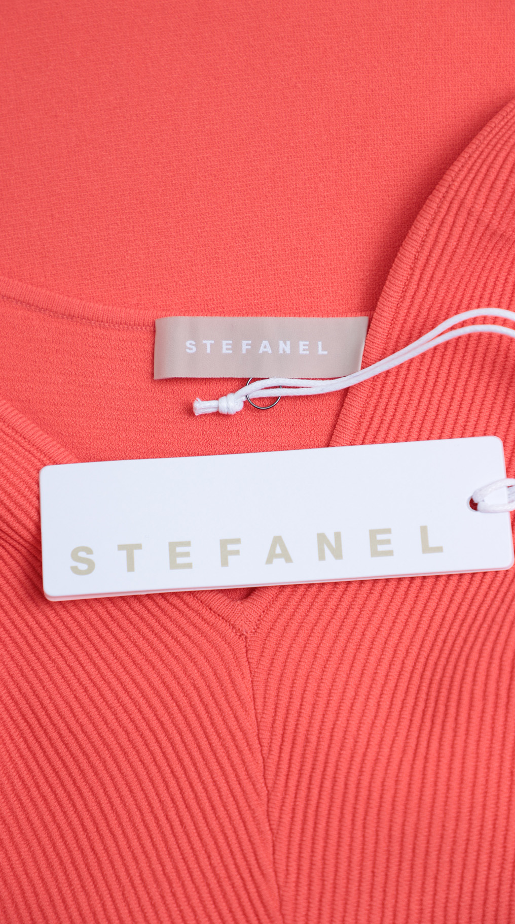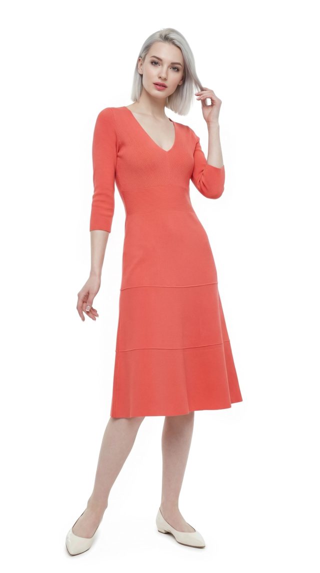 Новое стильное трикотажное платье итальянского бренда Stefanel яркого морковного цвета. Женственный приталенный фасон с глубоким вырезом декольте и рукавом 1/2. Без застежки. В составе: 83% вискоза, 17% полиамид, без подклада — ткань плотная, мягкая, трикотажная, хорошо тянется. Смотрится элегантно и дорого. Состояние — новое, с фирменной биркой Stefanel.