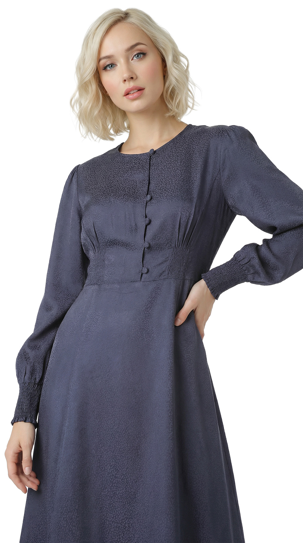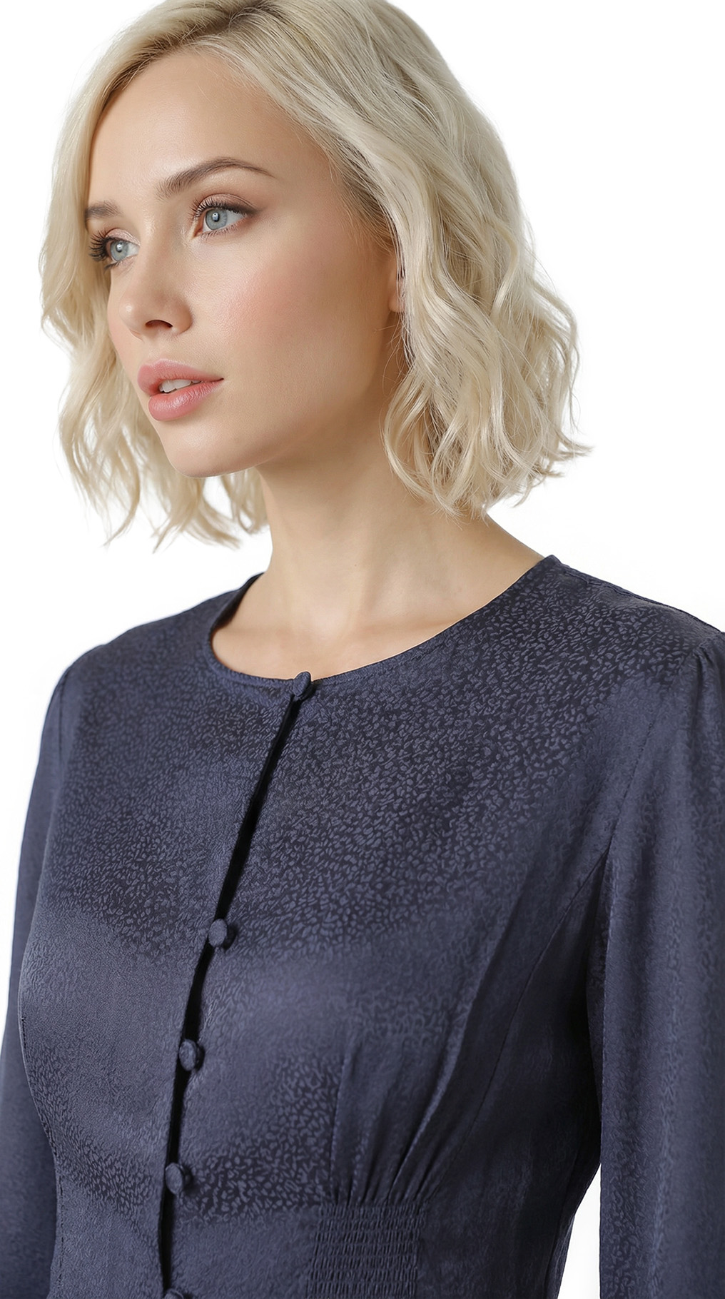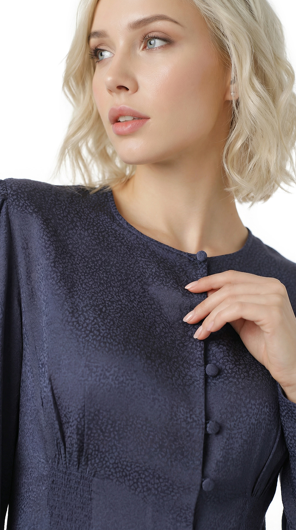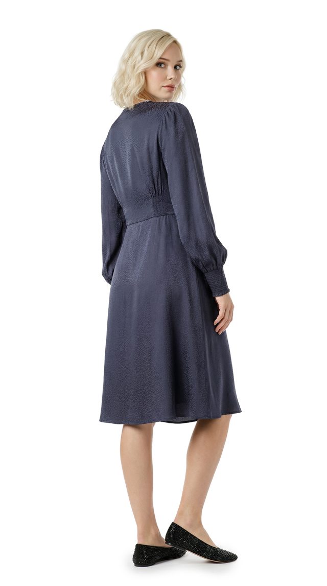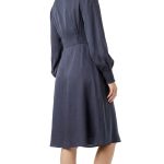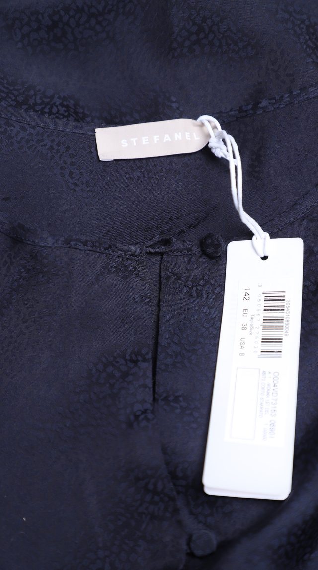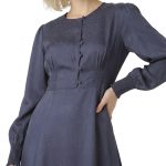 Новое женственное платье итальянского бренда Stefanel темно-синего (чернильного) цвета в мелкую точку. Приталенный фасон с длинным рукавом «фонарик», юбочкой полу-солнце и топиком с застежкой на воздушные пуговки и боковую молнию. Врезные кармашки в боковых швах. В составе: 100% вискоза: ткань средней плотности, очень мягкая, шелковистая. Состояние — новое, с фирменной биркой Stefanel.