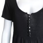 Трикотажное платье немецкого бренда Taifun черного цвета. Прямой фасон с коротким рукавом, завышенной талией, топиком на пуговках, обтянутых кружевом и вывернутыми швами. Простая элегантность — ничего лишнего. Бирка с составом стерта — экспертная оценка — вискоза, без подклада: ткань экстра качества: мягкая, шелковистая, хорошо тянется. Состояние: отличное.