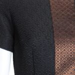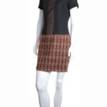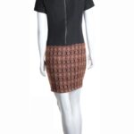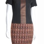 Элегантное платье французского бренда Talking French в черно-бежевых тонах. Женственный приталенный фасон с коротким рукавом, красивой бронзовой вставкой по переду и буклированной юбочкой. Застежка по спинке на молнию. В составе: 32% хлопок, 8% шерсть, 41% п.э, 15% эластан, 4% полиамид, на подкладе из 100% натурального ацетата: ткань плотная, отлично держит форму. Состояние: внешне — отличное, с внутренней стороны немного разошелся подклад.