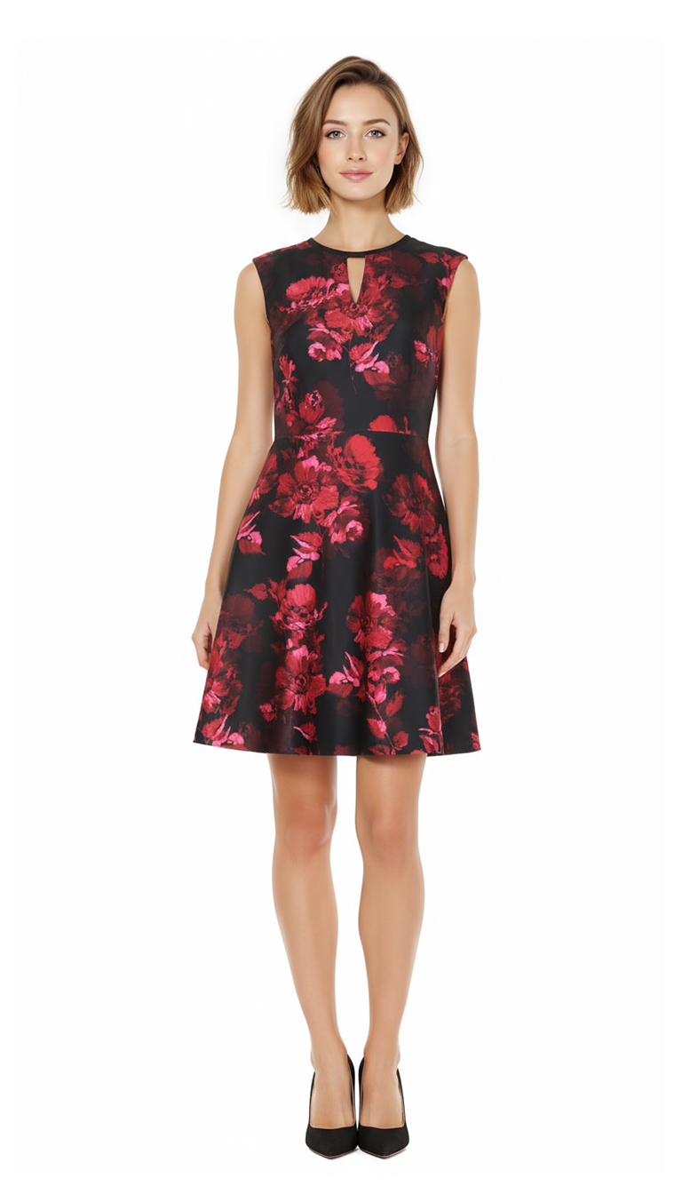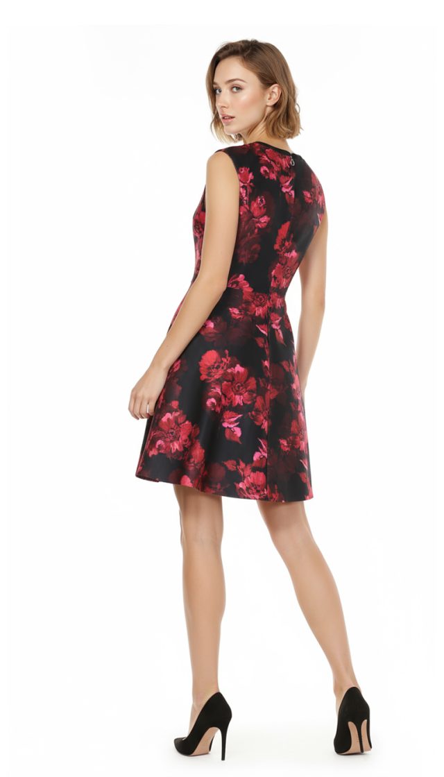 Новое трикотажное платье Tommy Hilfiger черного цвета с ярким цветочным принтом в красных тонах. Женственный фасон с юбочкой полу-солнце. Приталенный силуэт. Скругленный вырез горловины с вырезом по линии груди. Застежка на молнию с фирменным золотым шильдиком по спинке. В составе: 95% п/э, 5% спандекс — ткань необычайно мягкая, нежная и приятная в носке с хорошим стретчем. Продается с фирменной биркой магазина Tommy Hilfiger. Цена на бирке — 129$.
