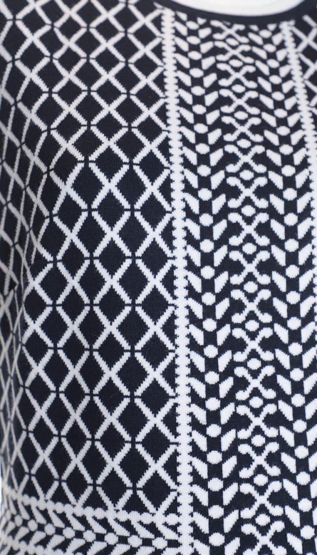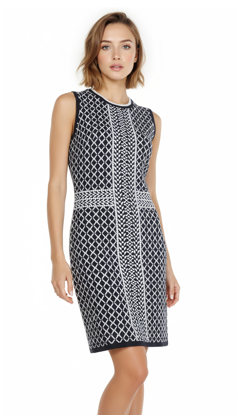 Новое трикотажное платье Tommy Hilfiger с ярким геометрическим принтом (белые ромбы и косы) на черном фоне. Приталенный фасон без рукавов. Без застежки. В составе: 72% вискоза, 28% полиэстр, без подклада: ткань плотная, мягкая, отлично тянется и облегает фигуру. Продается с фирменной биркой Tommy Hilfiger. Цена на бирке — 98.5$.
