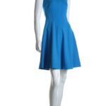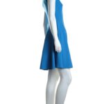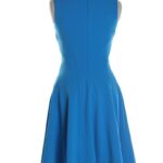 Женственное приталенное платье Tommy Hilfiger лазурного цвета с расклешенной юбочкой без рукавов. Застежка по спинке на молнию с фирменным золотым шильдиком. Длина чуть выше колена. В составе: 94% п/э, 6% спандекс — ткань приятная в носке, с хорошим стретчем. Состояние — идеальное, как новое.