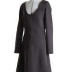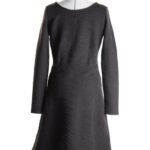 Трикотажное платье американского бренда Guess (Los Angeles) черного цвета в диагональный рубчик. Женственный фасон: приталенный топ и юбочка полу-солнце. Глубокий вырез горловины. Длинный рукав. Застежка на боковую молнию. Состав: 98% п/э, 2% эластан. Ткань плотная, мягкая, хорошо тянется. Состояние — хорошее.