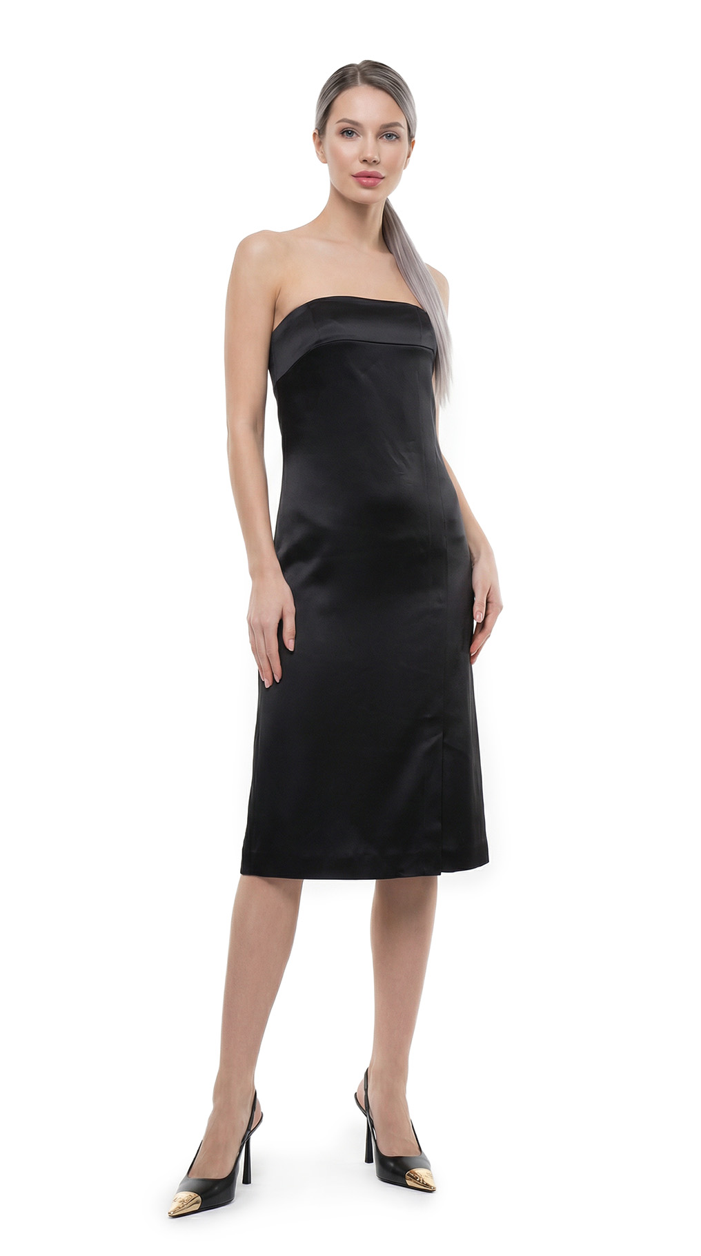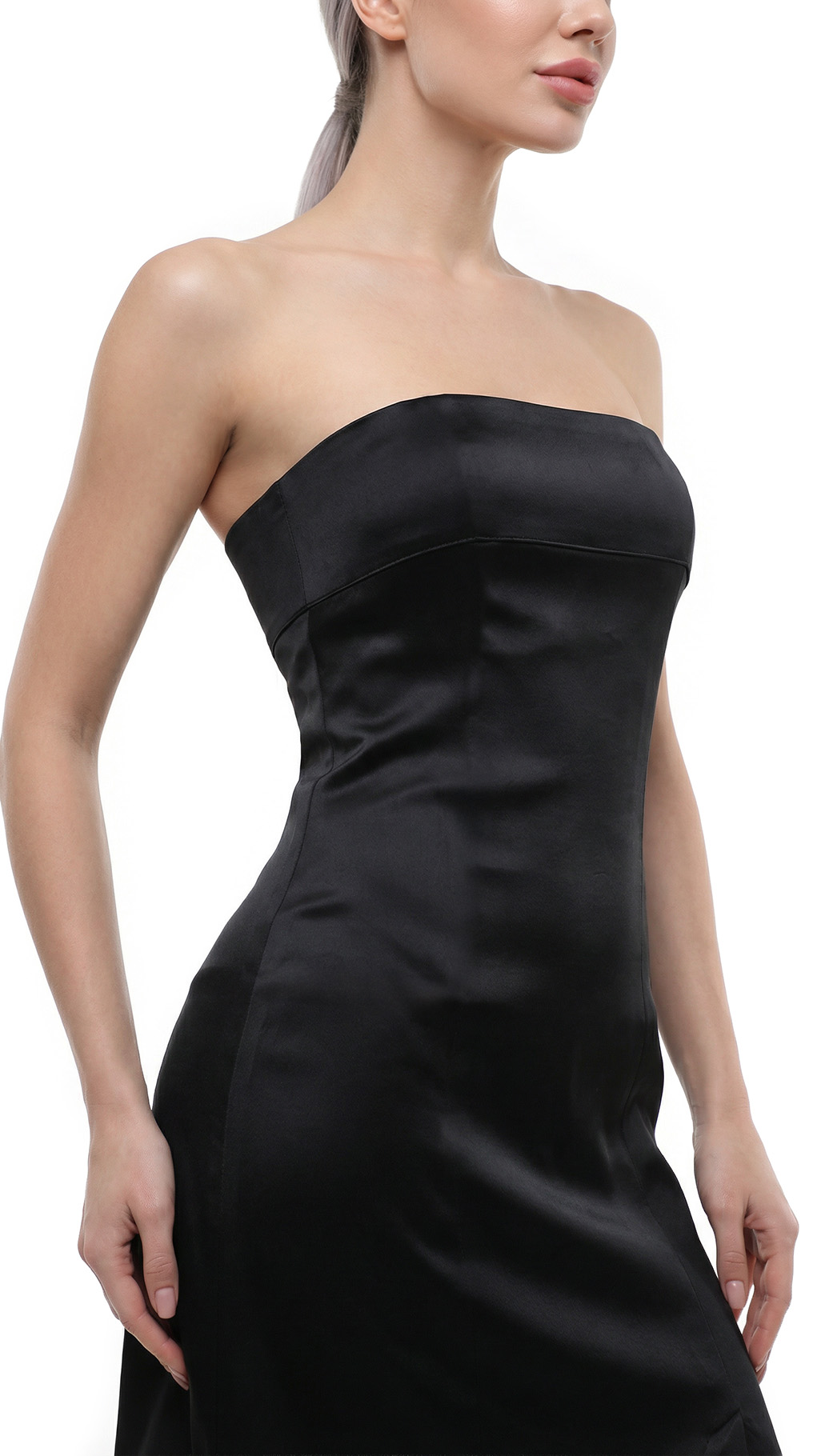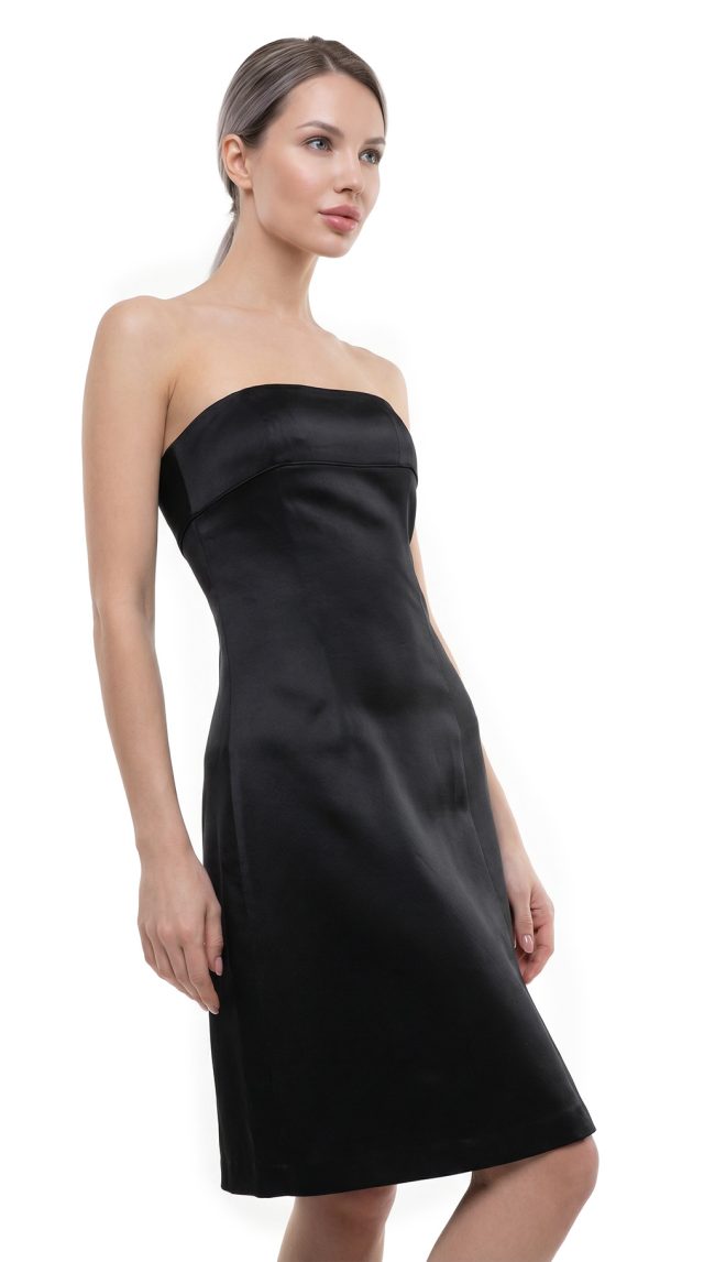 Новое дизайнерское платье французского бренда класса «люкс» Zapa Paris черного цвета. Элегантный приталенный фасон с корсетом на косточках, поддерживающим грудь. Застежка по спинке на молнию. Шличка спереди для комфорта в движении. Интересно смотрится в комплекте с шелковым болеро Zapa Paris (есть в каталоге). Премиальное качество пошива и материалов. В составе 80% инновационный триацетат (который еще называют ацетатным шелком) и 20% п.э, на подкладе из натурального ацетата — ткань средней плотности, необычайно мягкая, шелковая на ощупь. Состояние — новое, с фирменной биркой Zapa.