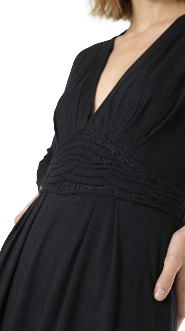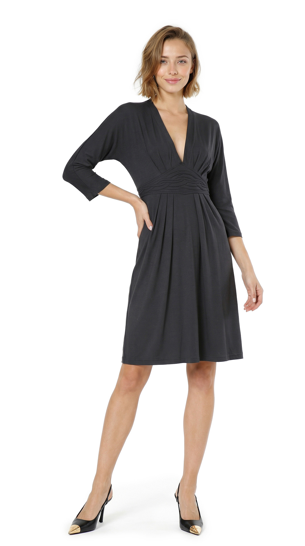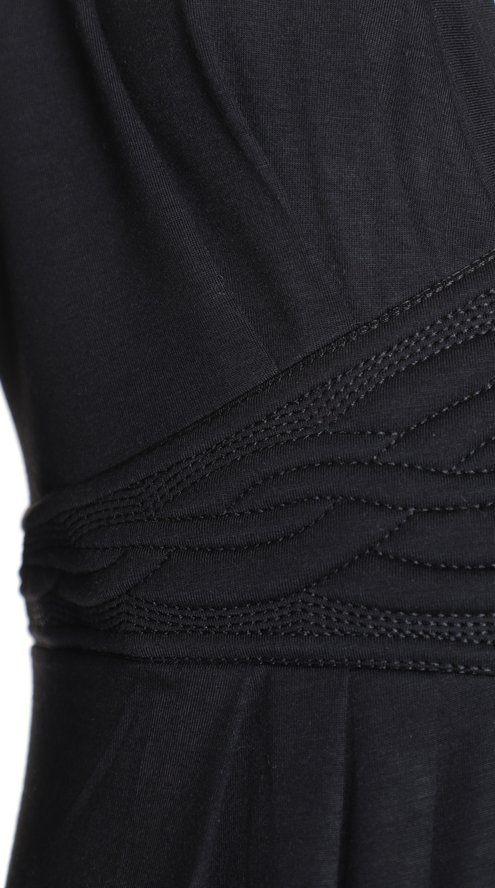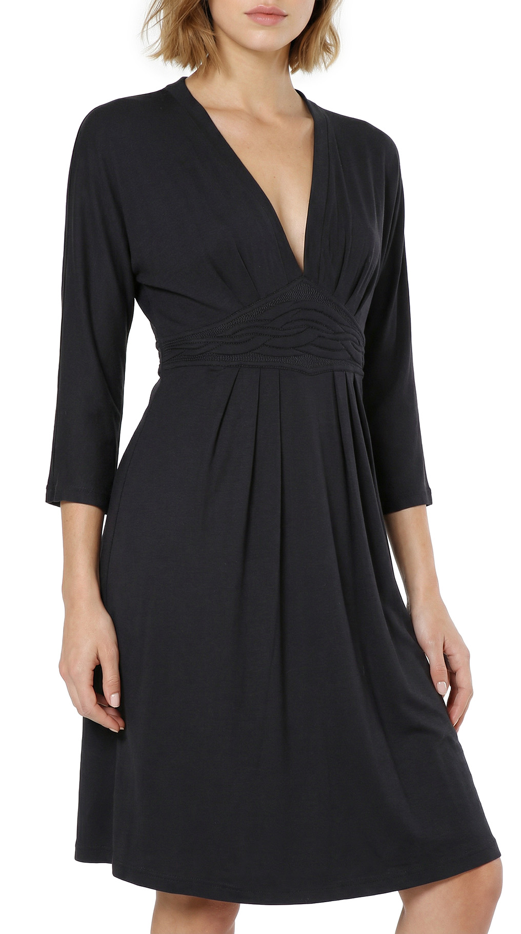Новое трикотажное платье французского бренда класса «люкс» Zapa Paris черного цвета с глубоким вырезом горловины, выгодно подчеркивающим зону декольте. Завышенная талия с красивой декоративной планкой, складками и подвязкой на поясок по спинке. Рукав длиной 3/4. Премиальное качество пошива и материалов. В составе 60% п.э, 35% вискоза, 5% эластан — ткань легкая, очень мягкая, бархатистая, хорошо тянется. Эксклюзив: в единственном экземпляре в России. Состояние — новое, с фирменной биркой Zapa.