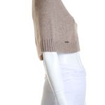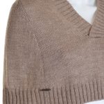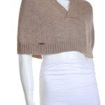 Новый джемпер-болеро легендарного французского бренда Cop Copine светло-бежевого цвета с вплетением серебристых нитей. Укороченный фасон без рукавов (как накидка на плечи). Широкая резинка по низу и в окантовке горловины. Без застежки. В составе: 30% шерсть, 30% альпака, 39% акрил, 1% п.э. — ткань плотной вязки, но легкая как пушинка, и очень мягкая. Состояние — новое, с фирменной биркой Cop Copine.
