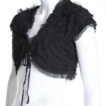 Новое шелковое болеро французского бренда класса «люкс» Zapa Paris черного цвета. Укороченный приталенный фасон со скругленной линией низа и подвязкой на кантик. Элегантное, стильное дополнение к вечернему платью на бретелях. Премиальное качество пошива и материалов. В составе: 100% натуральный шифон шелковый, на подкладе из натурального шелка — ткань экстра: легкая, воздушная. Эксклюзив: в единственном экземпляре в России. Состояние — новое, с фирменной биркой Zapa. Цена на бирке — 240 евро (!).