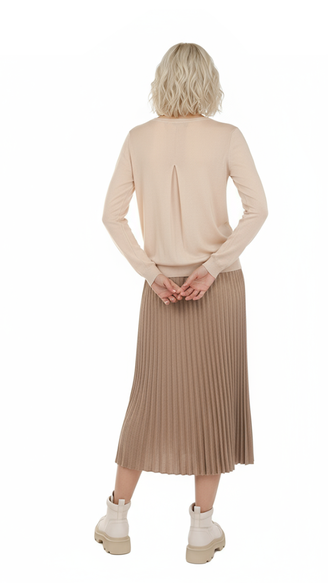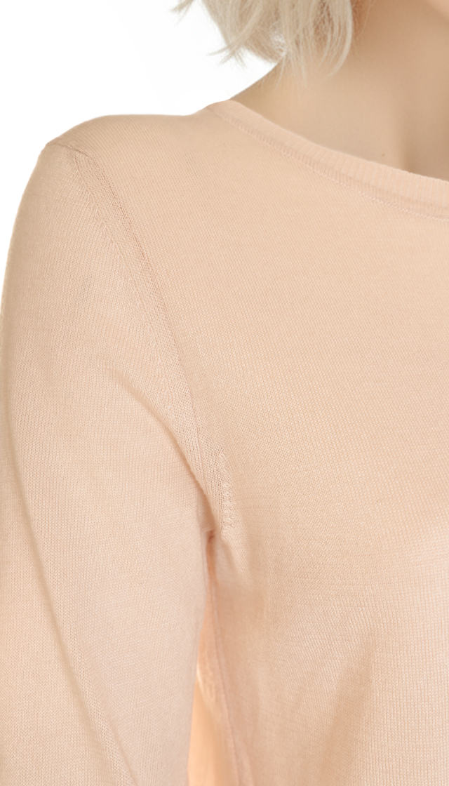 Оригинал. Новый джемпер концерна Max Mara (линия Max Mara) нежного светло-бежево-персикового цвета с оригинальной складочкой по спинке, скругленной горловиной, длинным рукавом и комфортной резинкой на бедрах и манжетах рукавов. Пошив — Италия. В составе: 70% хлопок, 30% шелк — ткань экстра качества: очень мягкая, легкая как пушинка. Состояние — новое, из аутлета концерна MaxMara (ярлык бренда надрезан — это политика аутлета).