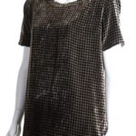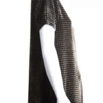 Ретро джемпер итальянского бренда прет-а-порте Beatrice B. из панбархата в бежево-черный ромб. Свободный фасон трапеция с коротким рукавом и скругленной горловиной. В составе: 80% вискоза, 20% натуральный шелк — ткань экстра качества: легкая, необычайно мягкая, с небольшим ворсом. Состояние — отличное, как новое.