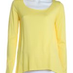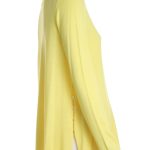 Трикотажный джемпер немецкого бренда BC Best Connections яркого желтого цвета. Свободный фасон «трапеция» со скошенными боковинами с глубокими разрезами на золотых пуговках. Длинный рукав и скругленная горловина с необработанными швами. В составе: 79% вискоза, 21% полиамид — ткань легкая, очень мягкая, эластичная. Состояние — идеальное, как новое.