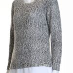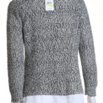 Новый хлопковый джемпер Calvin Klein серого цвета (вязка «букле» в сочетании белых и черных нитей). Оригинальный дизайн «2-в-1»: белая вставка по низу, создает впечатление, что под джемпером надета блузка. Длинный рукав. Стильное дополнение к брючкам, джинсам или юбке. В составе: 86% хлопок, 14% п.э. Состояние — новое с фирменной биркой Calvin Klein. Цена на бирке — 89.5$.