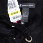 Новый трикотажный джемпер американского бренда Inc (International Concepts). Бархатная вставка с золотыми люверсами и подвязкой на бархатный кантик по линии груди. Вязка «резинкой» — прекрасно тянется и садится четко по фигурке. Длинный рукав. В составе: 80% вискоза, 20% нейлон — ткань средней плотности, мягкая, эластичная. Состояние — новое, с фирменной биркой INC. Цена на бирке — 79.5$.