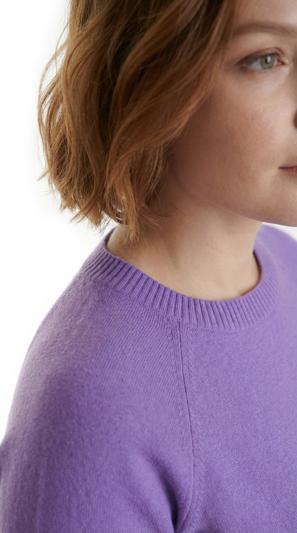 Оригинал с биркой. Новый шерстяной джемпер концерна Max Mara (линия iBlues) яркого сиреневого цвета. Приталенный покрой с длинным рукавом «реглан» и скругленным вырезом горловины. Резинка по бедрам, горловине и манжетам рукавов. Пошив — Румыния. В составе: 40% вискоза, 25% шерсть, 5% кашемир, 30% полиамид — ткань экстра качества: легкая, очень мягкая (не колючая), теплая, эластичная. Состояние — новое, с оригинальной биркой iBlues.