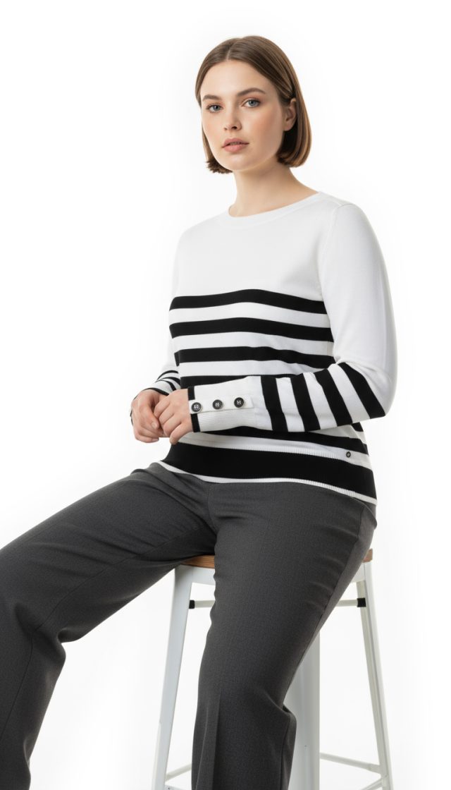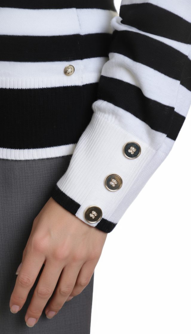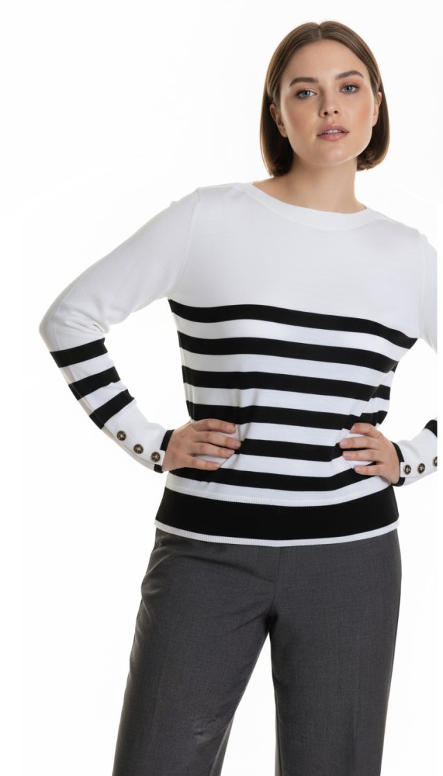 Оригинал с биркой. Новый шерстяной джемпер концерна Max Mara (линия PennyBlack) в бело-черную полосу. Прямой покрой с длинным рукавом и горловиной «лодочка». Яркие пуговки на манжетах рукавов. Фирменная «монетка» с гравировкой PennyBlack. Пошив — Бангладеш. В составе: 100% шерсть (Virgin Wool) — ткань экстра качества: легкая, очень мягкая (не колючая), теплая, эластичная. Состояние — новое, с оригинальной биркой PennyBlack.