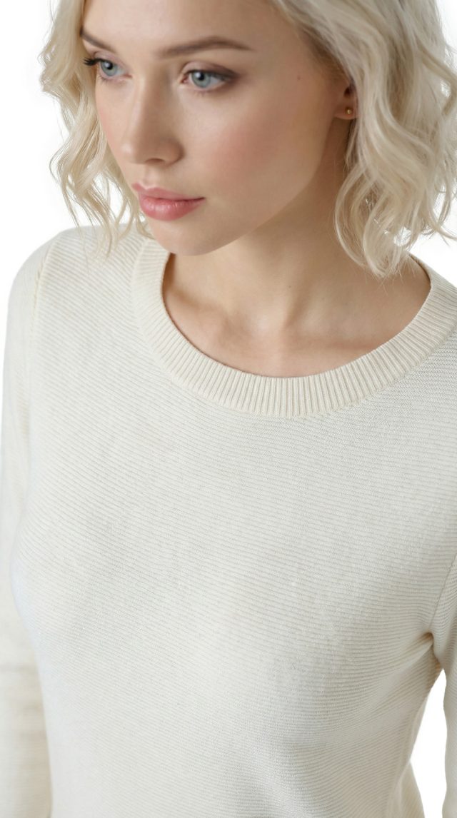 Оригинал. Новый трикотажный джемпер концерна Max Mara (линия PennyBlack) молочно-белого цвета с бежевой окантовкой. Скругленная горловина и манжеты рукавов на резинке. В составе: 50% вискоза, 30% п.э, 20% полиамид — ткань экстра качества: очень мягкая, эластичная, фактурная (в поперечную полоску). Состояние — новое, с оригинальной биркой PennyBlack.