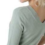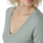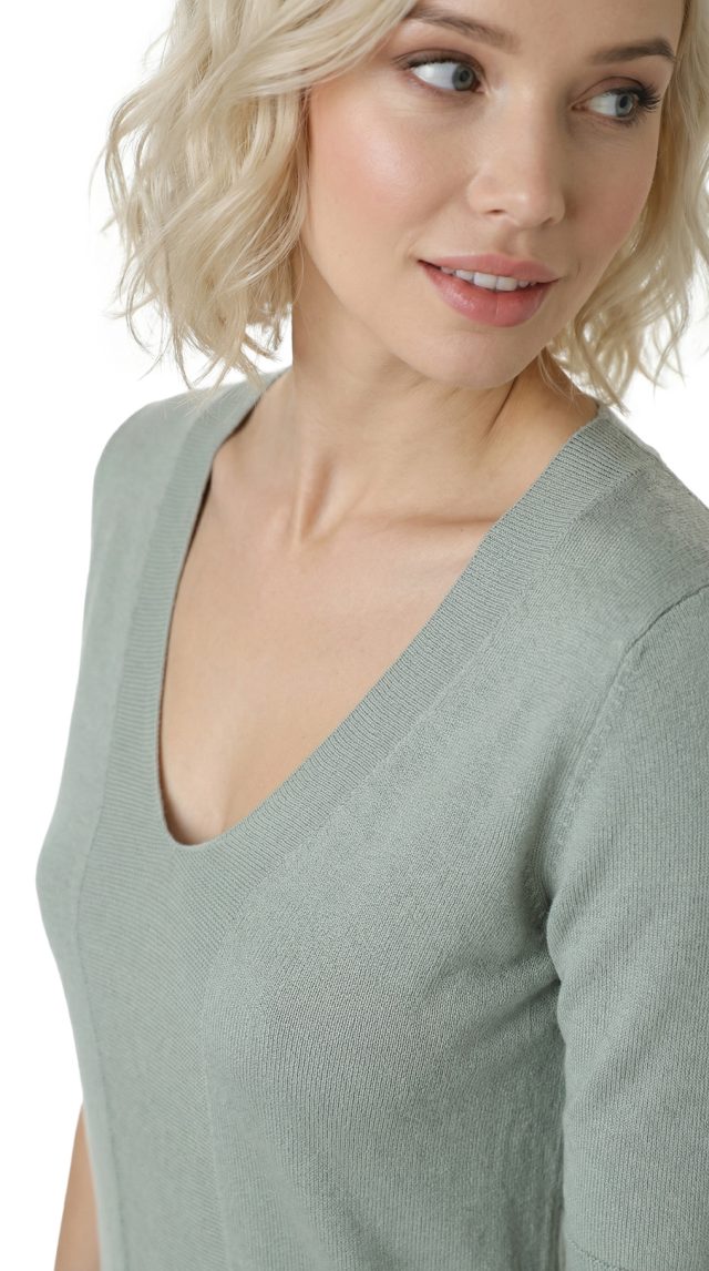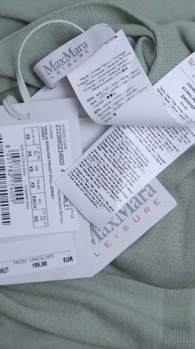 Оригинал с биркой. Новый трикотажный джемпер концерна Max Mara нежного мятного цвета. Женственный фасон с V-вырезом по переду и спинке и рукавом 1/2. Красивая окантовка горловины, плавно продолжающаяся по центру и низу — визуально стройнит фигурку. Вырезы в боковых швах для комфортной посадки. Стильное, элегантное дополнение гардероба в любое время года. Пошив — Италия. В составе: 70% натуральный шелк, 30% хлопок — ткань экстра качества: легкая, мягкая, бархатистая, хорошо тянется и садится точно по фигурке. Состояние — новое, с оригинальной биркой Max Mara (коллекция Leasure). Цена на бирке — 195 евро.