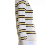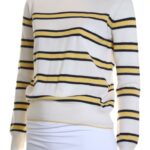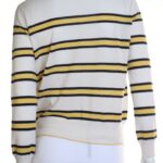 Оригинал. Трикотажный джемпер концерна Max Mara в желто-бело-черную полоску. Свободный фасон с длинным рукавом и широкой резинкой по бедрам. Скругленный вырез горловины, окантованный резинкой. В составе 80% шерсть, 20% кашемир — ткань экстра качества: легкая, как пушинка, очень мягкая. Из аутлета концерна MaxMara (ярлык бренда надрезан — это политика аутлета). Состояние — отличное, но есть внутренняя затяжка на левом плече (внешне не заметная).