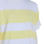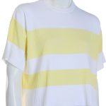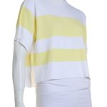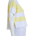 Оригинал. Новый трикотажный джемпер концерна Max Mara в бело-желтую полоску. Свободный укороченный фасон «трапеция» с коротким приспущенным рукавом и горловиной на резинке. Вырезы в боковых швах. Фирменная бусинка по спинке. В составе: 86% вискоза, 14% полиамид — ткань экстра качества: плотная, бархатистая, хорошо тянется. Состояние — новое, из аутлета концерна MaxMara (ярлык бренда надрезан — это политика аутлета).