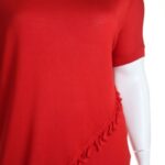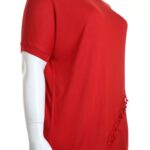 Оригинал. Новый трикотажный джемпер концерна Max Mara (линия Marina Rinaldi) насыщенного красного цвета. Свободный прямой удлиненный фасон с коротким приспущенным рукавом реглан. Скругленный вырез горловины. Красивая декорация в виде кисточек. В составе 100% вискоза — ткань экстра качества: легкая, очень мягкая, шелковистая на ощупь. Состояние — новое, из аутлета концерна MaxMara (ярлык бренда надрезан — это политика аутлета).