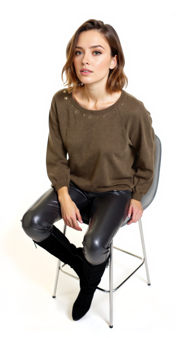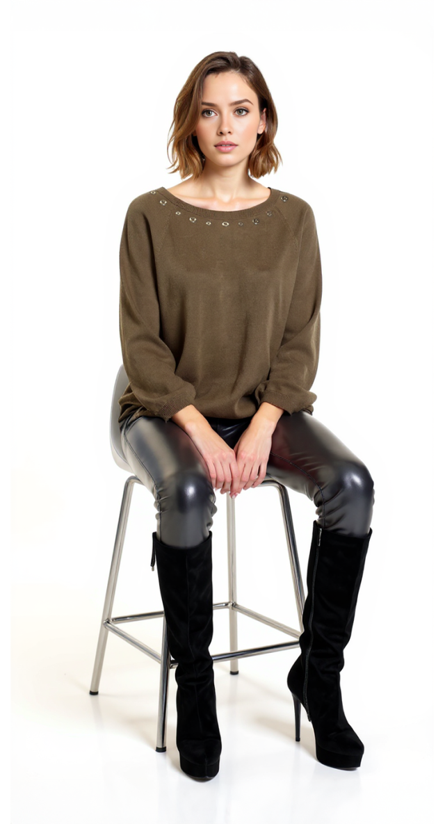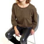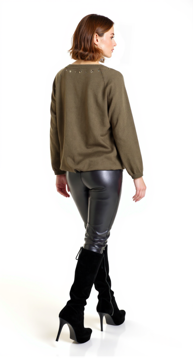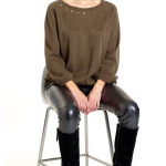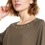 Новый стильный джемпер Michael Kors темно-оливкового цвета. Свободный фасон со скругленной горловиной, декорированной золотыми люверсами, и подвязкой на кантик. Приспущенный рукав длиной 3/4. В составе: 60% хлопок, 40% вискоза — ткань средней плотности, очень мягкая, приятная к телу. Оригинал из США. Состояние — новое, с фирменной биркой Michael Kors.