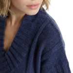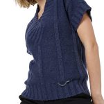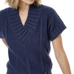 Шерстяной джемпер популярного итальянского бренда Motivi фиолетового цвета с объемным V-образным воротничком, коротким приспущенным рукавом реглан и фирменным серебряным логотипом на цепочке. Широкая резинка по бедрам. В составе 30% мохер, 10% шерсть, 60% акрил — ткань легкая, мягкая, теплая. Состояние — идеальное, как новое.