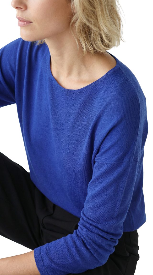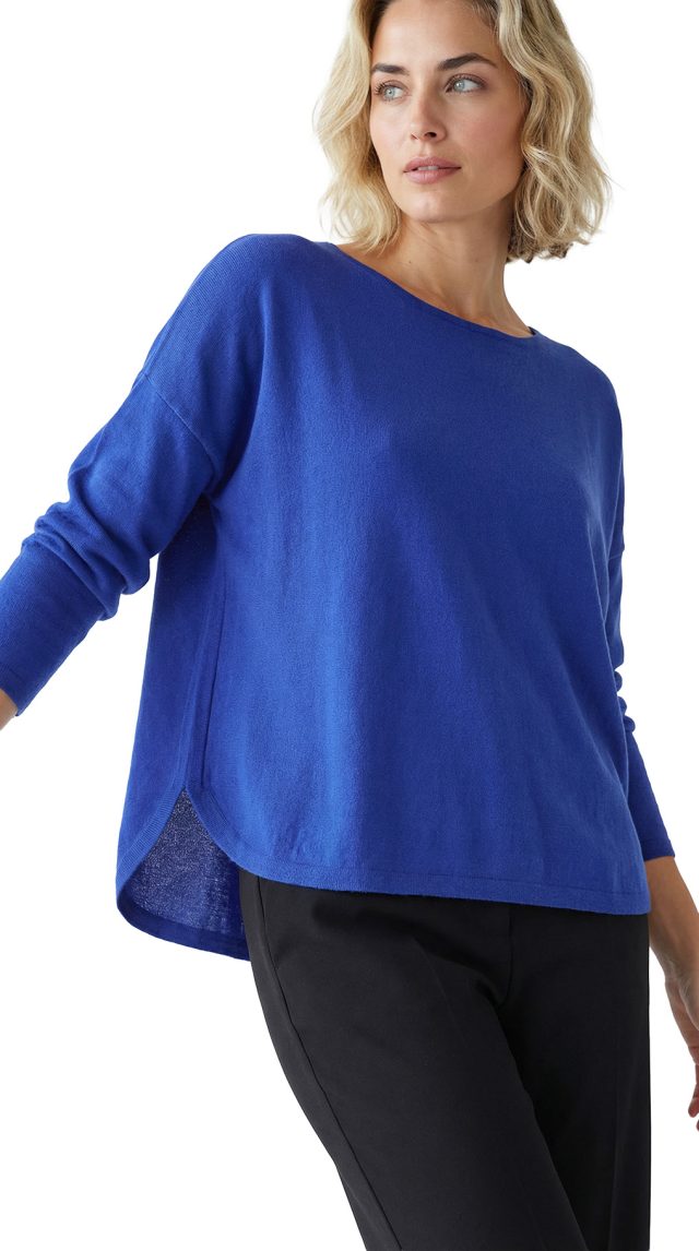 Новый трикотажный джемпер Ralph Lauren (премиальная линия Polo Ralph Lauren) яркого синего цвета из 100% мериносовой шерсти — тонкой, мягкой, комфортной в носке. Свободный покрой со слегка удлиненной спинкой, длинным приспущенным рукавом реглан и скругленной линией низа. Оригинал из США. Состояние — новое, с фирменной биркой Ralph Lauren.