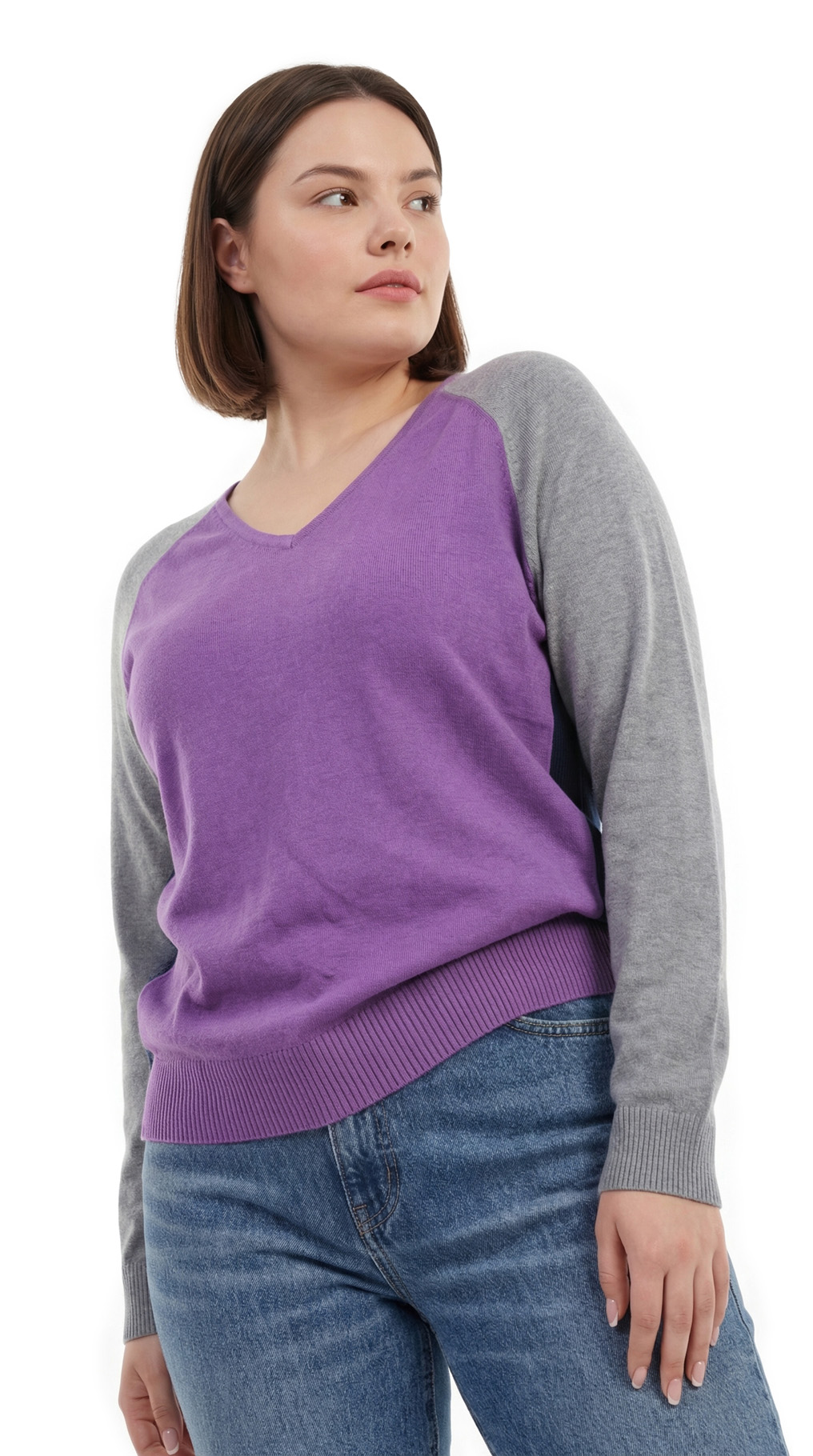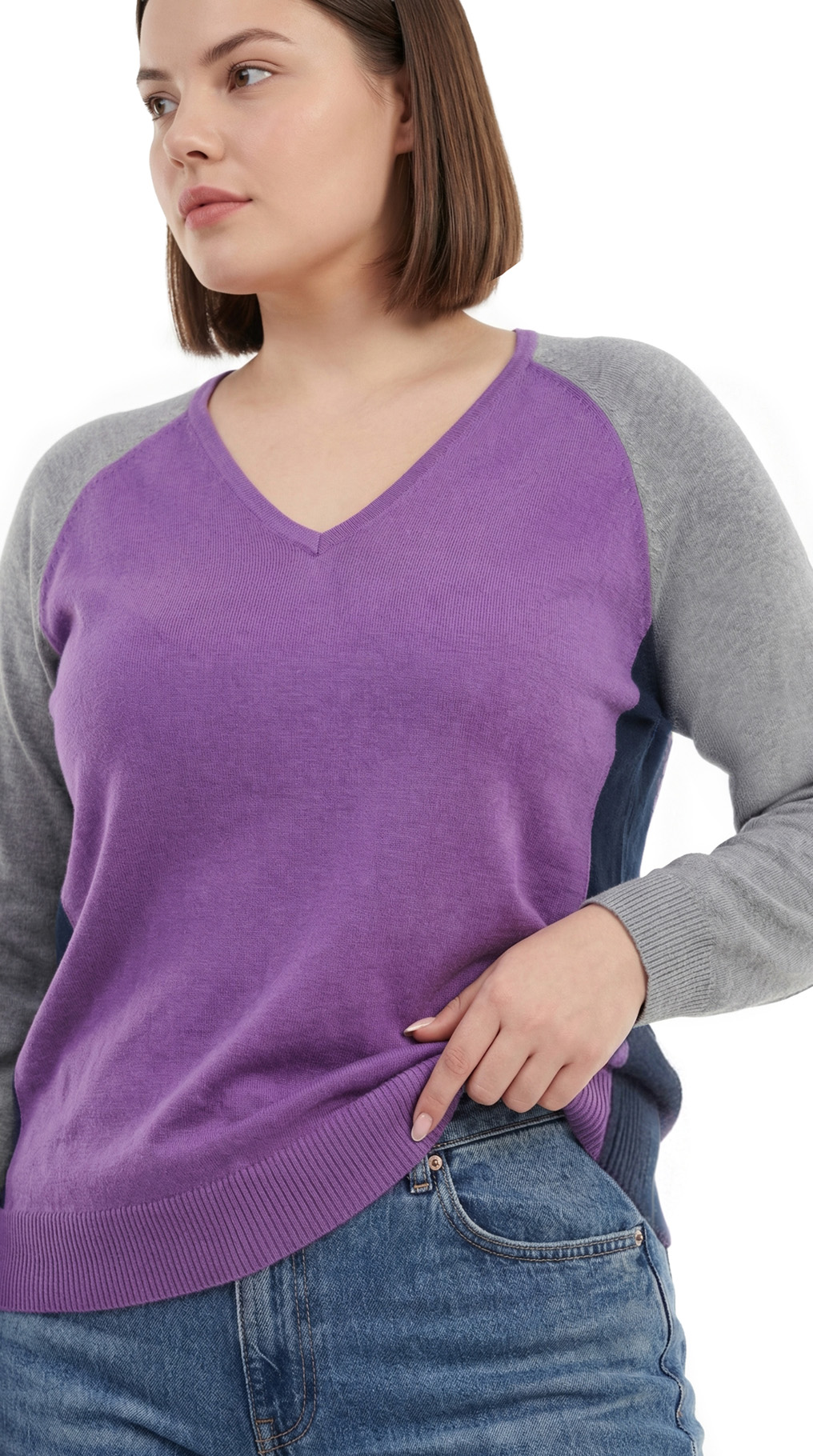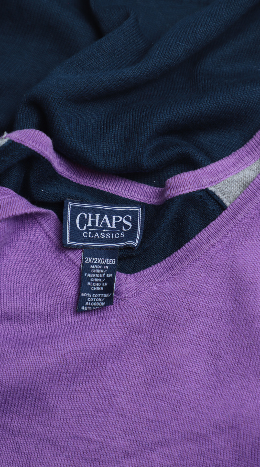 Трикотажный джемпер Ralph Lauren (коллекция Chaps) в светло-серых, темно-синих, и сиреневых тонах. Полу-приталенный фасон с длинным приспущенным рукавом реглан и V-образным вырезом горловины. Широкая резинка по бедрам. В составе: 60% хлопок, 40% модал — ткань очень мягкая, приятная к телу. Состояние — идеальное, как новое.