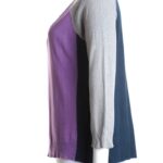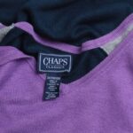 Трикотажный джемпер Ralph Lauren (коллекция Chaps) в светло-серых, темно-синих, и сиреневых тонах. Полу-приталенный фасон с длинным приспущенным рукавом реглан и V-образным вырезом горловины. Широкая резинка по бедрам. В составе: 60% хлопок, 40% модал: ткань очень мягкая, приятная к телу. Состояние — идеальное, как новое.