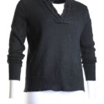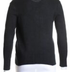 Трикотажный джемпер Ralph Lauren (коллекция Chaps) черного цвета, красиво декорированный объемными «косами» по вырезу горловины. Свободный фасон с длинным рукавом и широкой резинкой по бедрам. В составе: 100% хлопок: ткань плотная, хорошо держит форму. Состояние — отличное.