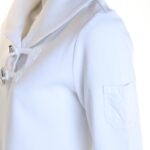 Трикотажный хлопковый джемпер Ralph Lauren кипельно-белого цвета. Прямой фасон с длинным рукавом, воротничком «шалька» и застежкой на воздушные петли. Широкая резинка по бедрам и манжетам рукавов. Декоративный фальшь-кармашек на левом плече. Оригинал из США. В составе 100% хлопок: ткань плотная, мягкая, по фактуре «в рубчик». Состояние — отличное.