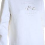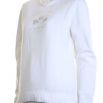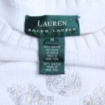 Трикотажный хлопковый джемпер Ralph Lauren кипельно-белого цвета. Прямой фасон с длинным рукавом и скругленным воротничком. Широкая резинка по бедрам и манжетам рукавов. Фирменная вышивка шелковыми серебристыми нитями названия бренда и морских ракушек. Оригинал из США. В составе 100% хлопок: ткань плотная, хорошо держит форму. Состояние — хорошее: белый цвет ушел в еле заметную желтизну.